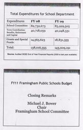 of numbers. Please notice that the allotment to schools (including Keeefe) by town meeting is also monotonically increasing. The following is a statement from our town manager Julian Suso in the 2008 Annual Report