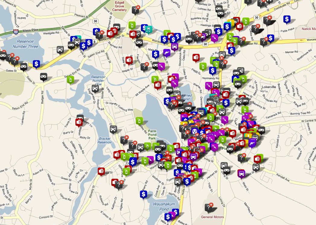 Dedicated to Excellence in Public Safety to Proudly Serving The Community The apparent reason to discard the concept of Excellence in Public Safety can be shown by crime maps over time. Our police department subscribes to http://www.crimemapping.com. This allows you to see how they perform crime fighting. Crime in downtown Framingham is centered around the police station. The criminals are not the least bit intimidated by our fierce crime fighters. Can it be said that the Framingham police are effective at their primary function? We, the taxpayers, pay $11 million a year for this non-performance. |