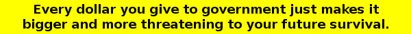 Historians and anthropologists have now located many examples of peaceful communities that had gangs of barbarians living nearby. Imagine one of our more violent gangs riding into town on horses, instead of motorcycles or cars. These barbarians were lazy and had little interest in work. Every few weeks they would ride into town, steal food, clothing, and whatever else they could carry, then ride back out. They would live off this stolen loot until it was gone, then ride back in and raid the town again. This would go on for many years until.... One night as the barbarians were sitting around the campfire planning their next attack, one complained, "You know, all this riding in and out of town fighting with people is beginning to feel like work. It isn't fun anymore. There's got to be a better way." Another lamented, "You're right, in the last raid I lost an ear and two more fingers. I'm running out of parts". This sorrowful discussion would continue until someone exclaimed. "I've got it! Let's ride into town and stay! We'll put up a building in the middle of the town and call it City Hall or State Capital or some such thing, and we'll use it as a hangout. We'll take baths and shave and dress up in fine clothes like respectable businessmen. Then, we'll levy something we call a tax". "We'll tell the people - we'll call them taxpayers - that as long as they pay the tax regularly, exactly as we tell them with the right forms and everything, we won't punish them. We'll start the tax low so they won't feel it's worth fighting over, and each year we'll raise it a bit until we're taking a sizable part of their incomes". Another barbarian suggested, "Yes, and we can use some of that tax money to provide a few services, maybe streets, schools and courts, so that the people will feel they're getting something for their money". And another added the final touches. "There are other gangs in the area. When they see how docile our taxpayers have become, they'll try to ride in and takeover. They'll be shearing our sheep. We'll need to provide police and an army to protect what is ours. The taxpayers will love it, they'll think we're doing it for them". |